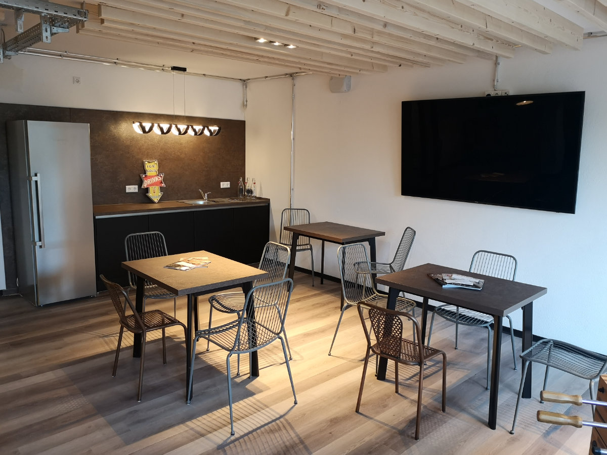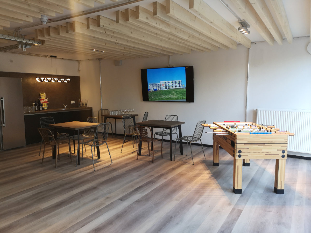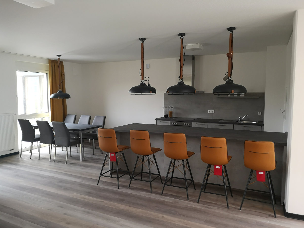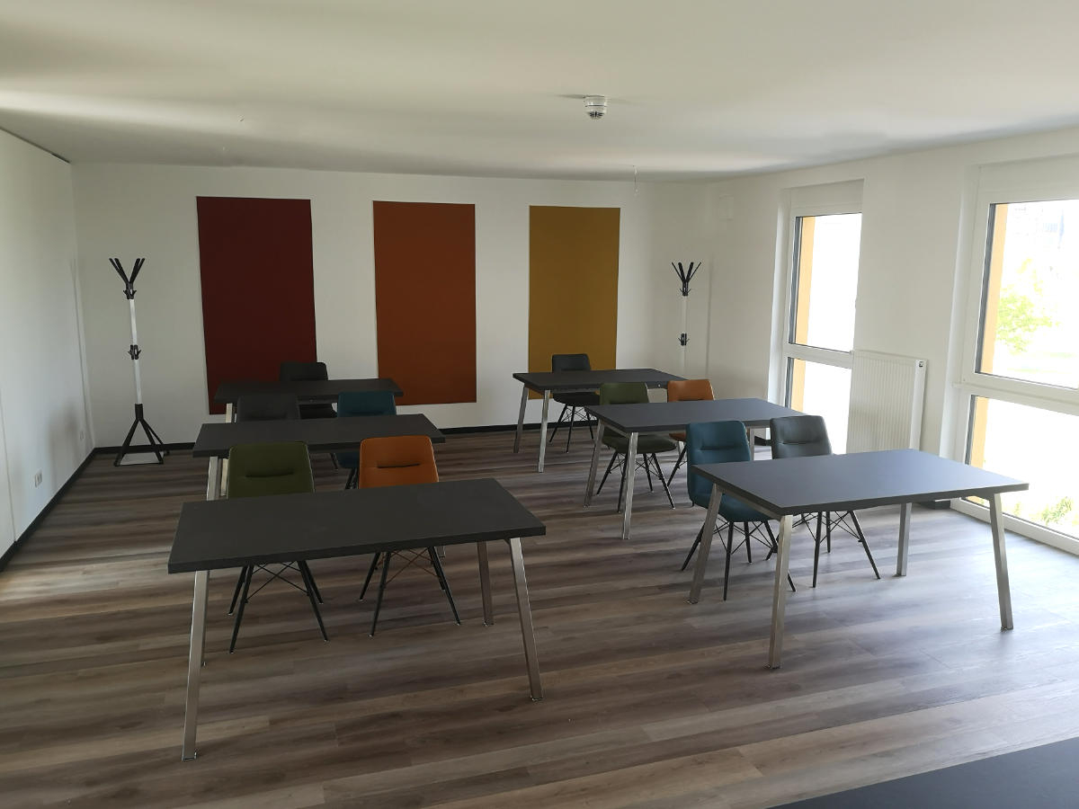 Gemeinschaftsbereiche im Mittelbau wie eine Cooking-Area und ein Lern- und Seminarraum